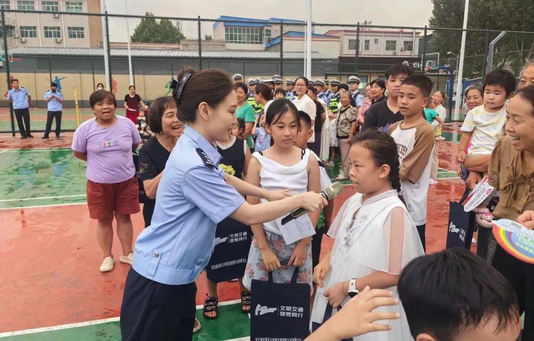 現(xiàn)場,鐵騎隊(duì)員的交通指揮手勢演示,展現(xiàn)了交通警察的風(fēng)采。民警通過向村民講解指揮手勢的重要作用、農(nóng)村道路常見交通違法行為的危害,強(qiáng)調(diào)了服從交警指揮的重要性。有獎(jiǎng)問答環(huán)節(jié)更是將整場活動(dòng)推向了高潮,現(xiàn)場氛圍熱烈,在互動(dòng)中讓“一盔一帶”、未滿12周歲禁止騎自行車、未滿16周歲禁止騎電動(dòng)自行車等交通安全知識深入民心。