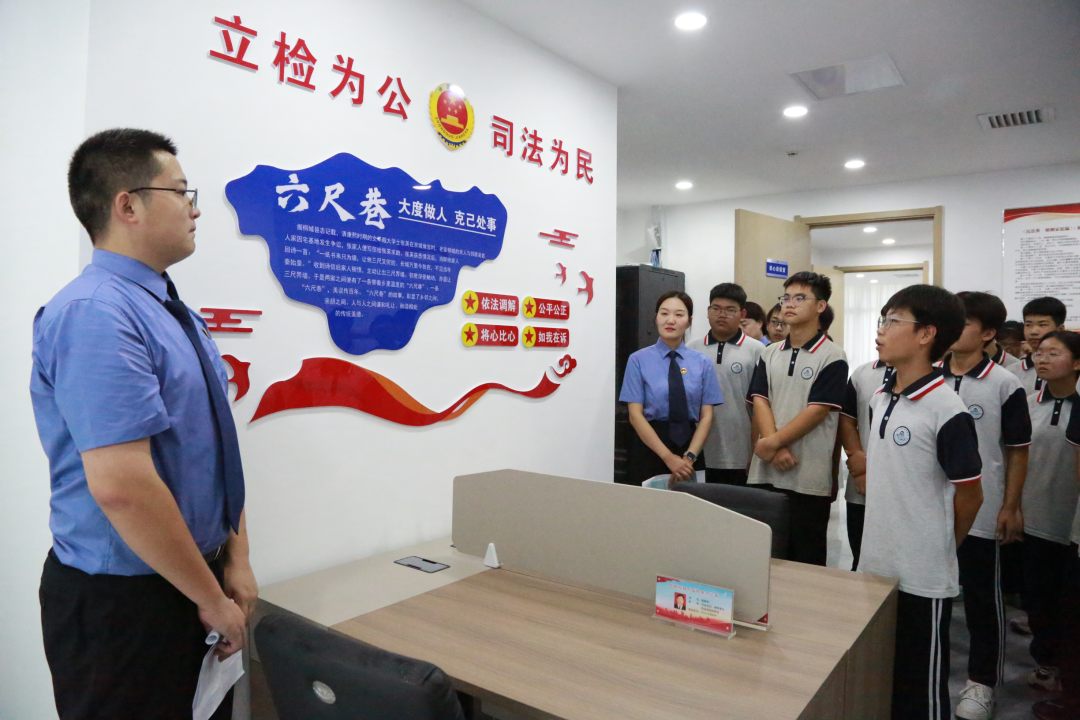 “同學們,高鐵樞紐片區(qū)檢察服務中心以服務征遷群眾為宗旨,它是集家庭教育指導、心理疏導、回訪幫教、矛盾調處、法治宣傳等為一體的綜合服務中心……現在大家看到的是我們專門為未成年人設置的家庭教育指導室和心理疏導室,在這里可以為未成年人及親屬提供全方位的家庭教育指導和心理疏導、心理測評、行為矯正等法律服務”。在干警講解下,學生們了解了檢察服務中心的功能作用,感受到檢察機關做實未成年人保護工作的司法溫度。