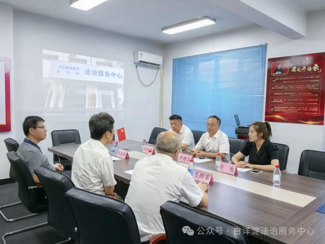 8月20日,河北雄安新區(qū)白洋淀法治服務(wù)中心高級(jí)顧問(wèn)(原司法部全面依法治國(guó)研究中心副主任)李富成、新區(qū)黨群工作部副部長(zhǎng)孫嘉鵬、雄安新區(qū)政務(wù)服務(wù)中心副主任毛捍軍到中心調(diào)研指導(dǎo)工作。
