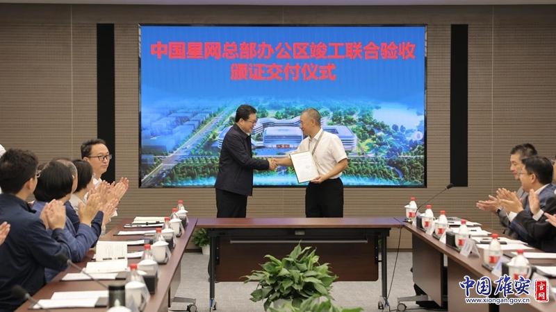 中國(guó)星網(wǎng)雄安總部項(xiàng)目竣工聯(lián)合驗(yàn)收頒證儀式現(xiàn)場(chǎng)。雄安新區(qū)宣傳網(wǎng)信局供圖