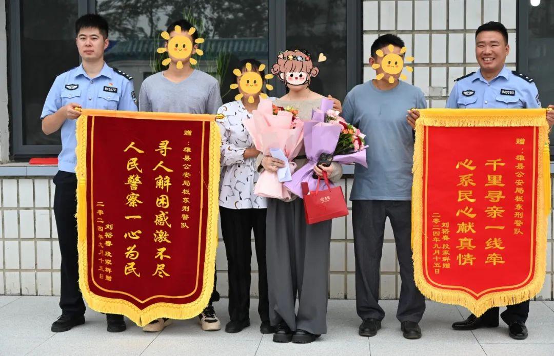 團聚的當(dāng)天,劉先生、段女士夫婦給雄縣公安局和板東刑警隊送上了致謝錦旗,用他們樸實的方式,向?qū)びH路上遇到的濃濃“警”色致以深深的敬意。