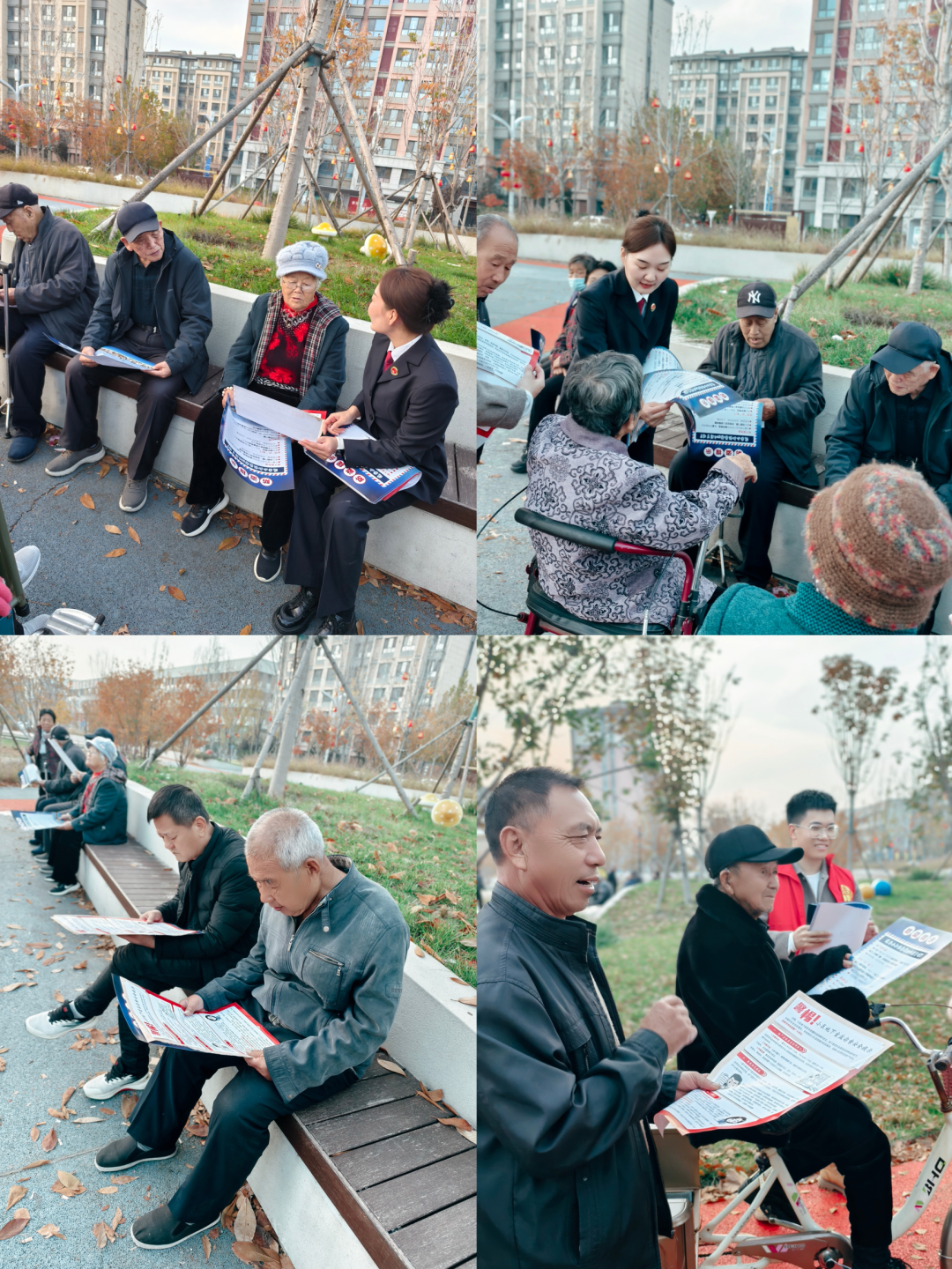 法治課后,檢察干警還與銀帆社區(qū)工作人員一道前往社區(qū)小廣場發(fā)放宣傳資料、海報。“謝謝檢察官們的提醒,我們一定認(rèn)真看看你們發(fā)的宣傳冊,提高防范意識,維護(hù)好我們的治安安全?!币晃淮鬆斢芍缘卣f。