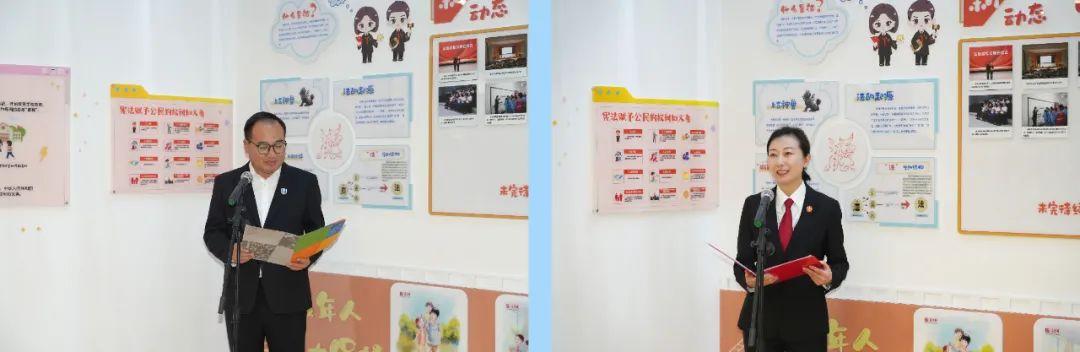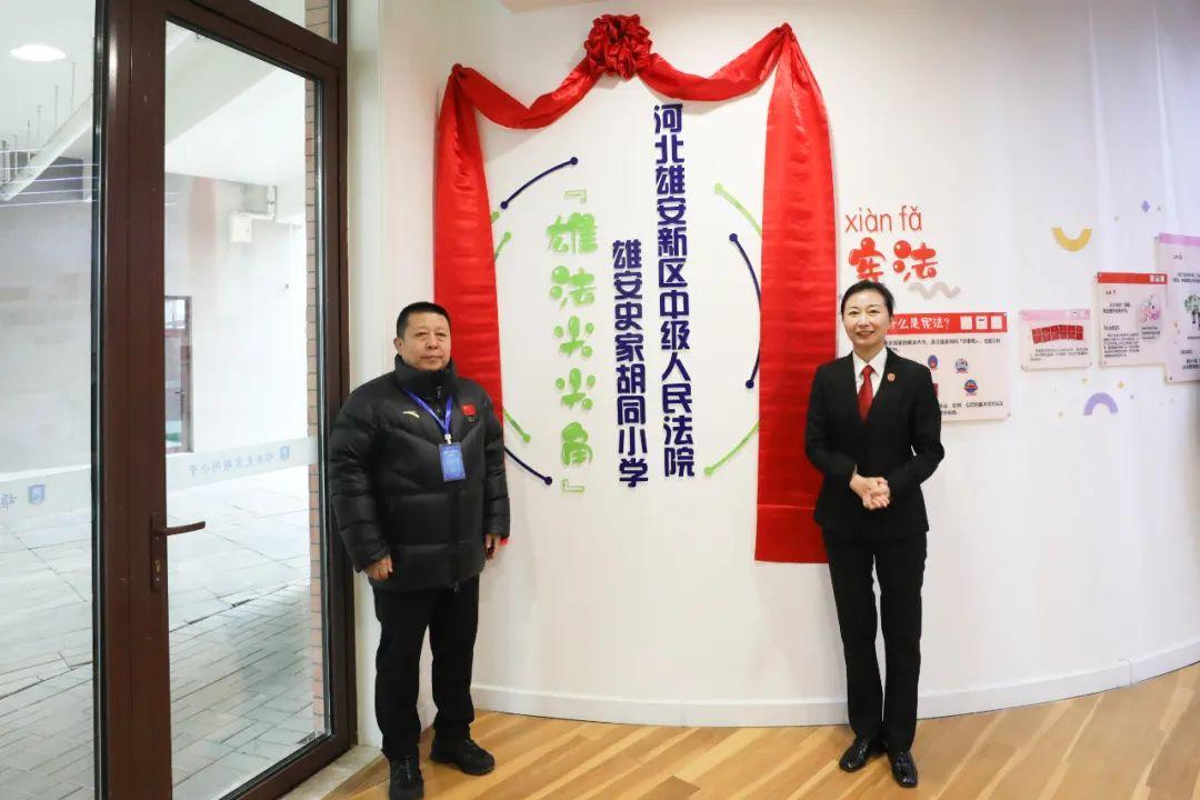 為充分發(fā)揮法治副校長職能延伸作用,做好新區(qū)青少年普法宣傳教育工作,切實(shí)增強(qiáng)新區(qū)中小學(xué)生法律意識和法治觀念,12月12日,雄安中院與雄安史家胡同小學(xué)聯(lián)合開展“雄法尖尖角”法治角揭牌活動。雄安中院黨組副書記、副院長李靜靜、雄安史家胡同小學(xué)校長張欣欣、校長助理化國輝出席活動并致辭,雄安中院少審?fù)ジ删?、雄安史家胡同小學(xué)師生代表參加活動。