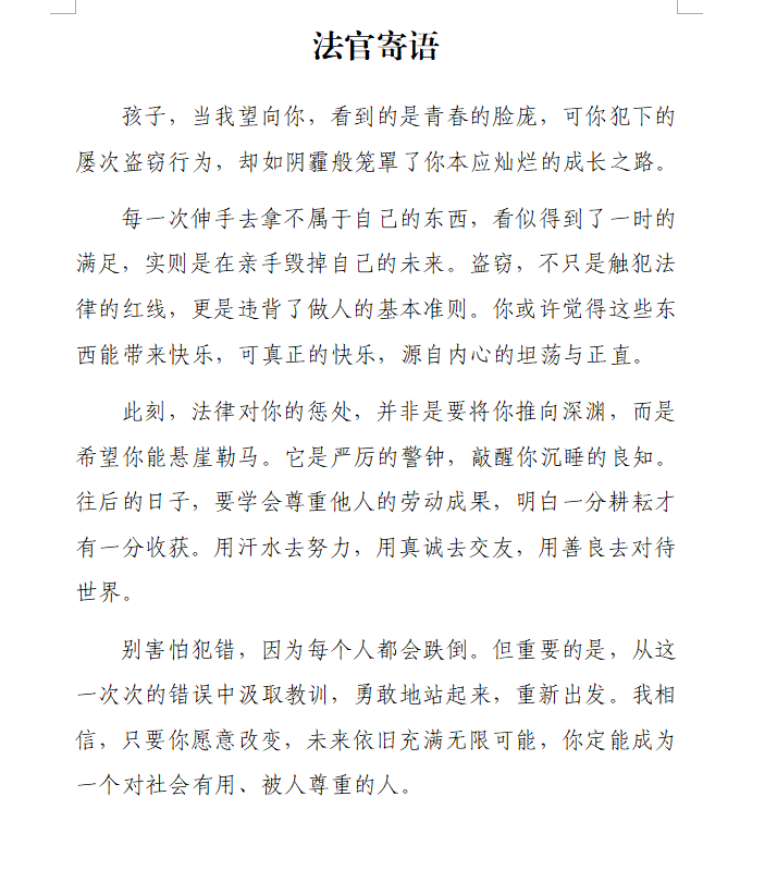判決送達并生效后,被告人坦然接受判決結果。該院隨即對被告人進行了回訪,對案卷進行了封存,并與孩子及家長約定好下一次的回訪見面時間。