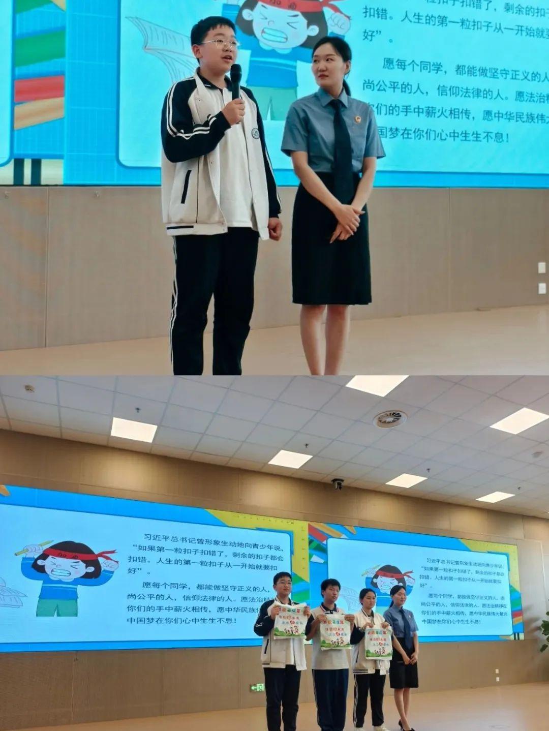 講座最后,檢察官向全體同學(xué)發(fā)出暖心寄語:“愿每個同學(xué),都能做堅守正義的人、崇尚公平的人、信仰法律的人,愿法律精神在你們手中薪火相傳,愿中華民族偉大復(fù)興中國夢在你們心中生生不息。”