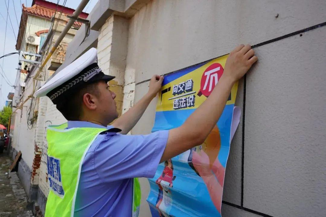 集市墻面、攤位旁,民警認(rèn)真張貼交通安全海報(bào),“向交通違法說不”等標(biāo)語醒目亮眼。把交通安全知識(shí)“貼”進(jìn)生活場景,讓往來群眾隨時(shí)能看到,潛移默化提升安全意識(shí)。