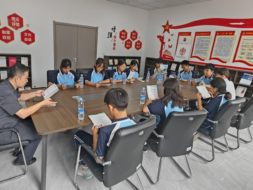 老師和學(xué)生們參觀了安檢室、信訪接待室、調(diào)解室、訴訟服務(wù)中心,負(fù)責(zé)人郭智輝介紹法庭黨建和審判融合工作開展情況,如何以“黨建紅”引領(lǐng)“法治藍(lán)”,以司法裁判為“盾”筑牢法律底線,老師和學(xué)生們對黨建和審判融合工作有了深入的了解。
