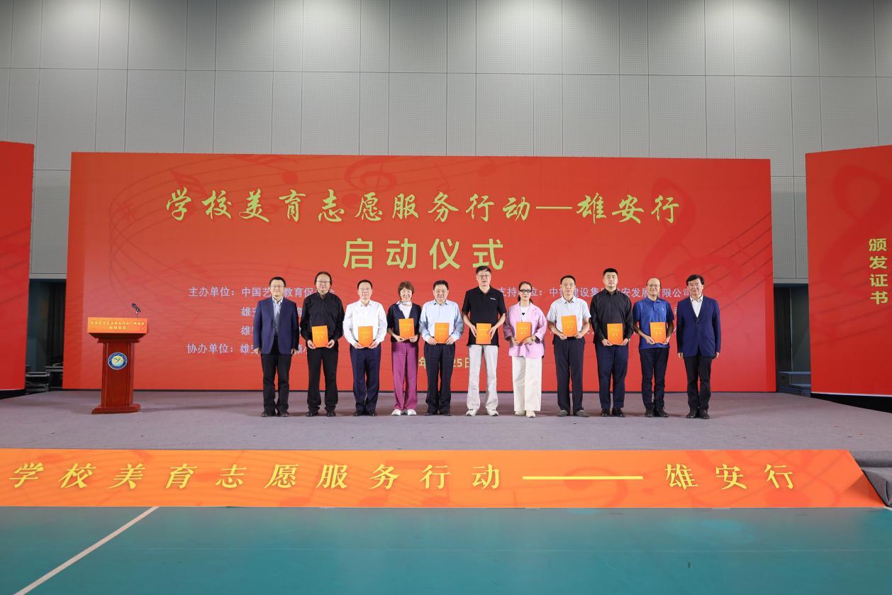啟動(dòng)儀式上,中國(guó)藝術(shù)教育促進(jìn)會(huì)以及雄安新區(qū)教育發(fā)展基金會(huì)相關(guān)負(fù)責(zé)人為首批志愿服務(wù)專(zhuān)家代表、愛(ài)心企業(yè)頒發(fā)了志愿證書(shū)。國(guó)家一級(jí)演員、程派青衣李海燕作為志愿者代表發(fā)出倡議,呼吁更多藝術(shù)家、美育專(zhuān)家和優(yōu)秀教師加入志愿服務(wù)行列。