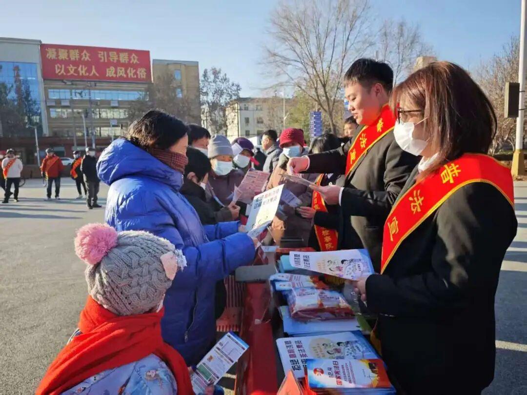 12月4日,初冬微寒,陽光和煦,雄州公園廣場人頭攢動。雄縣人民法院聯(lián)合縣委政法委、公安局、檢察院、司法局等二十余家單位共同開展了一場規(guī)??涨暗膽椃ㄐ麄魅栈顒樱瑧椃ň袢缗柊闱呷氚傩招奶?。