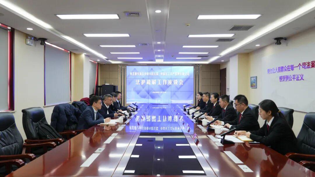 近日,中國化工資產(chǎn)管理有限公司走進(jìn)雄安中院,對雄安中院高效響應(yīng)疏解央企需求,為企業(yè)安全平穩(wěn)運(yùn)行保駕護(hù)航表示肯定,并贈(zèng)送錦旗表示感謝。雙方聯(lián)合召開了法護(hù)疏解工作座談會(huì),圍繞扎實(shí)推進(jìn)服務(wù)疏解單位“法官對接人”制度運(yùn)行,著力營造服務(wù)疏解、配套疏解、支撐疏解的法治環(huán)境等進(jìn)行深入交流。