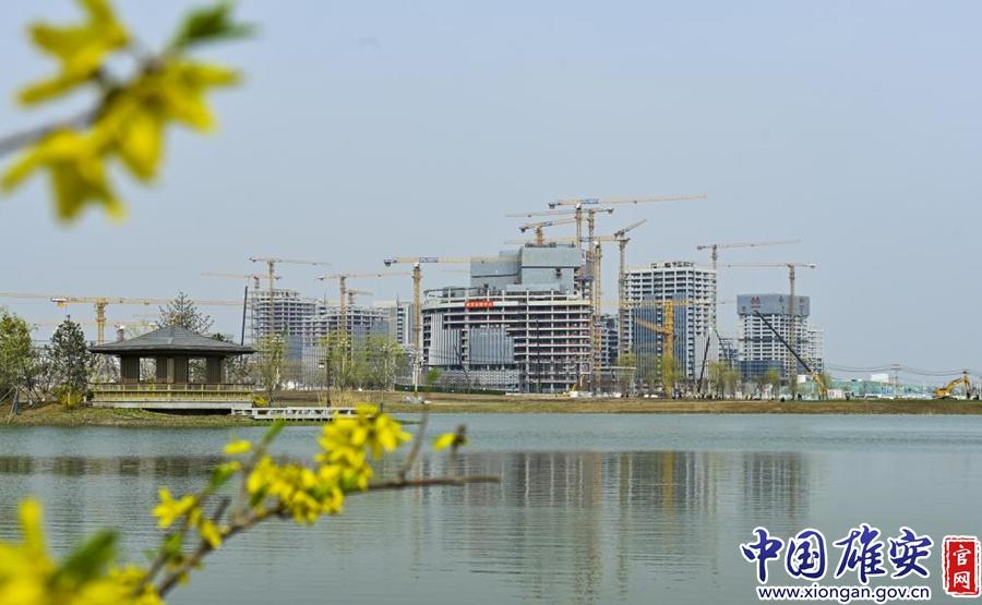 熱火朝天的建筑工地與爛漫春花,構(gòu)成了雄安春日最獨(dú)特的風(fēng)景。胡忠 攝