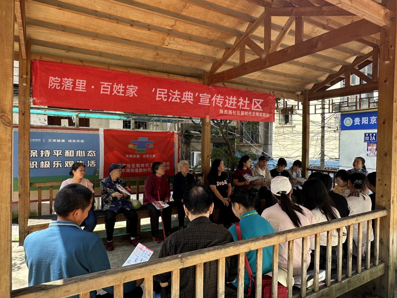 5月24日,黔東街道陜西路社區(qū)新時(shí)代文明實(shí)踐站組織開展“院落里·百姓家”理論宣講暨民法典宣傳進(jìn)社區(qū)活動(dòng)。