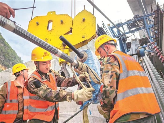 6月6日,經(jīng)過8小時的牽引架設(shè),由貴州交建集團所屬橋梁集團承建的在建世界第一高橋——花江峽谷大橋第一條智慧主纜索股成功安裝,實現(xiàn)在2378米長的主纜上采用光柵光纖(復(fù)合碳纖維絲)進行應(yīng)力監(jiān)測,該應(yīng)力應(yīng)變監(jiān)測技術(shù)在大跨徑懸索橋上的運用屬國際首創(chuàng),邁出了懸索橋智能健康監(jiān)測創(chuàng)新賦能的關(guān)鍵一步。