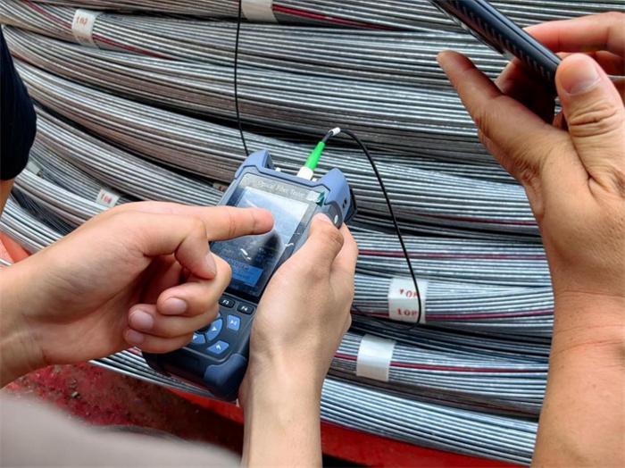 由于智慧纜索光纖成分是二氧化硅,安裝過程精度要求高,施工過程中,六安8標(biāo)現(xiàn)場管理人員和工人聚精會神、精準(zhǔn)調(diào)度,嚴(yán)格控制牽引速度,排查各工序?qū)鈻殴饫w的保護措施。6日16時許,智慧纜索成功拉通入鞍后順利通過功能檢測。