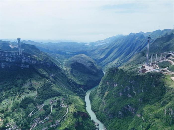 據(jù)了解,六安高速花江峽谷大橋是貴州省橋旅融合示范性項目工程,大橋主橋跨徑1420米,橋面至水面高度625米,建成后,花江峽谷大橋不僅主橋跨徑居山區(qū)橋梁跨徑世界第一,更將成為新的山區(qū)峽谷世界第一高橋。同時,將通過建設(shè)“橋梁觀光+橋梁運動體驗+旅游服務(wù)”為一體的橋旅融合綜合體,努力打造貴州橋旅融合3.0樣板。
