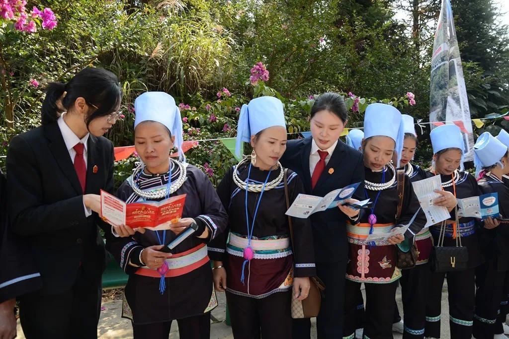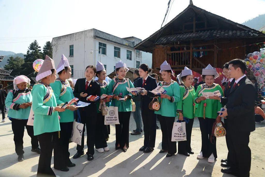 近日,貴州省黔東南州榕江縣人民法院組織干警來到水尾水族鄉(xiāng)開展普法宣傳活動,為當?shù)馗髯迦罕娝蜕戏ㄖ巍按蠖Y包”,共同慶祝水尾鄉(xiāng)建鄉(xiāng)四十周年。