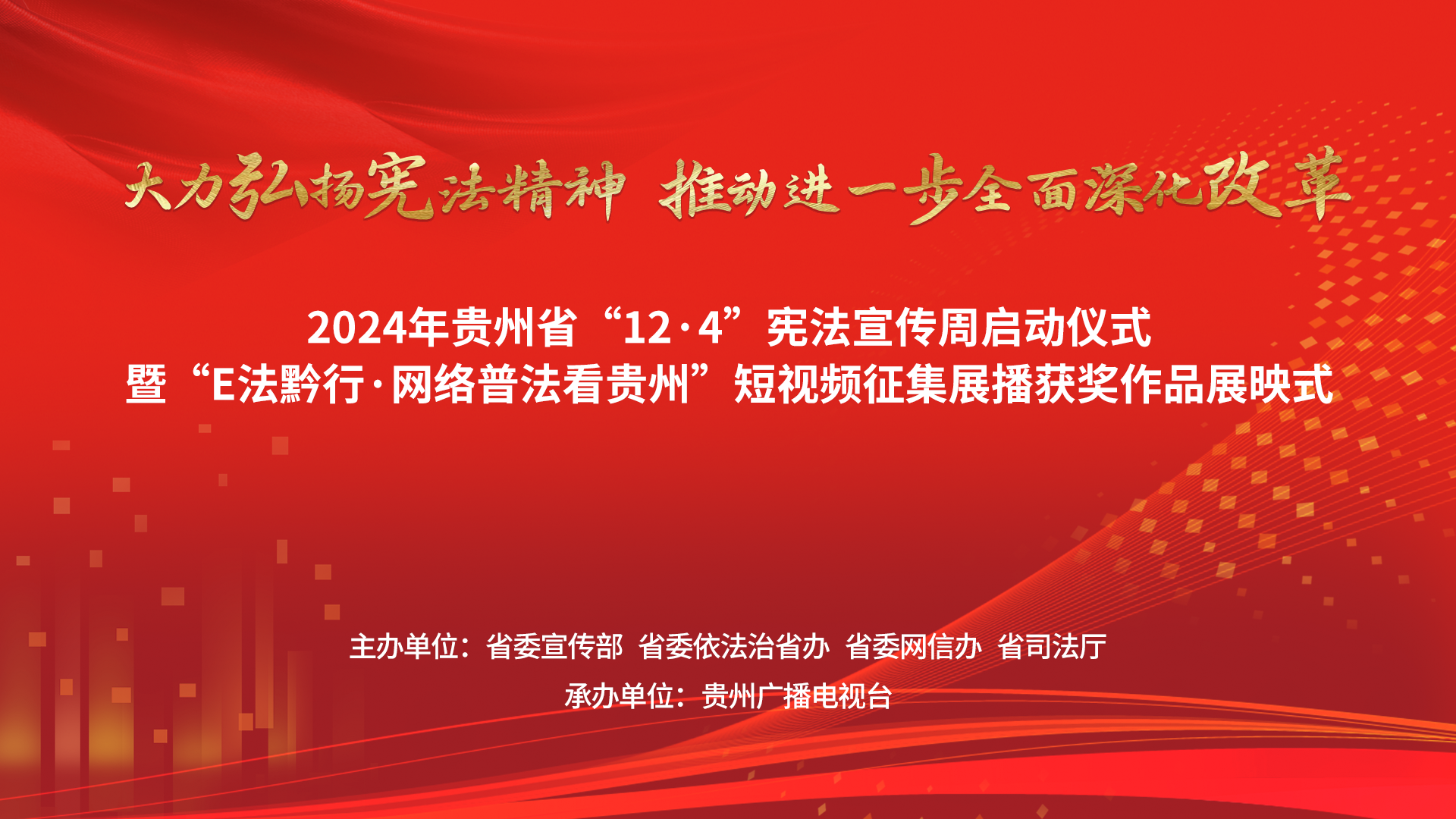 12月1日,由貴州省委宣傳部、貴州省委依法治省辦、貴州省委網(wǎng)信辦、貴州省司法廳聯(lián)合主辦的2024年貴州省“12·4”憲法宣傳周啟動儀式暨“E法黔行·網(wǎng)絡(luò)普法看貴州”短視頻征集展播獲獎作品展映式在貴陽舉行。貴州省委常委、貴州省委宣傳部部長盧雍政在活動上致辭并為獲獎代表頒獎,貴州省人民政府副省長賈利軍出席并為獲獎代表頒獎。
