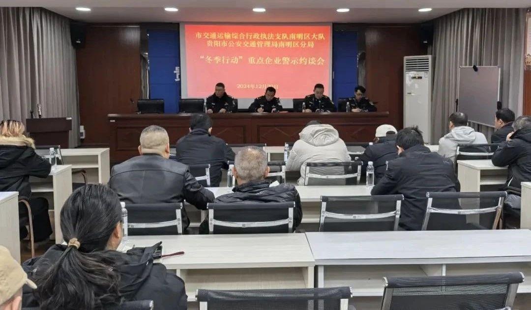 當(dāng)前正值隆冬時(shí)節(jié),為更好地應(yīng)對(duì)冬季雨雪降溫惡劣天氣,最大限度保障人民群眾生命財(cái)產(chǎn)安全,12月20日,貴陽(yáng)市公安交通管理局南明區(qū)分局聯(lián)合交通運(yùn)輸綜合執(zhí)法部門(mén)組織“兩客一危一貨”企業(yè)負(fù)責(zé)人開(kāi)展警示約談會(huì),通報(bào)今年以來(lái)轄區(qū)內(nèi)發(fā)生的交通事故典型案例,并結(jié)合冬季出行特點(diǎn)分析研判今冬交通安全隱患情況,督促提醒企業(yè)嚴(yán)格管理車(chē)輛和駕駛?cè)?,常態(tài)化對(duì)車(chē)輛安全設(shè)施進(jìn)行排查,堅(jiān)決杜絕車(chē)輛帶“病”上路;定期對(duì)駕駛?cè)碎_(kāi)展交通安全培訓(xùn),提升駕駛?cè)税踩庾R(shí)。