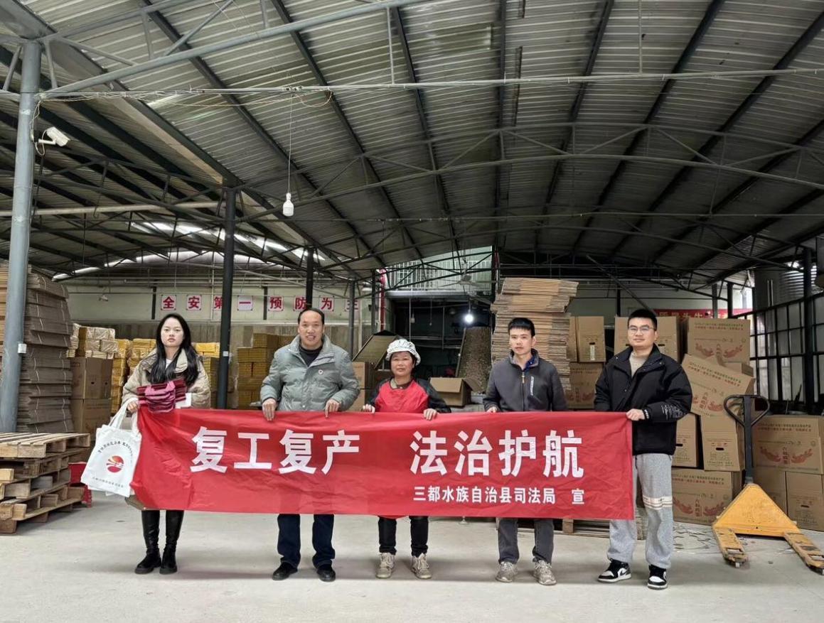 春節(jié)假期結(jié)束后,各企業(yè)陸續(xù)恢復(fù)工作。為確保企業(yè)合法、有序和高效地復(fù)工復(fù)產(chǎn),有效預(yù)防和遏制企業(yè)違法事件的發(fā)生,進一步優(yōu)化和提升法治化營商環(huán)境,2月8日,貴州省黔南州三都縣司法局普安司法所深入普安鎮(zhèn)轄區(qū)各企業(yè),開展以“復(fù)工復(fù)產(chǎn) 法治護航”為主題的送法進企業(yè)宣傳活動。