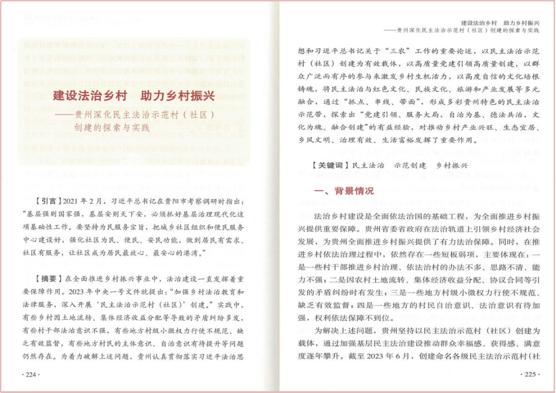 《建設(shè)法治鄉(xiāng)村 助力鄉(xiāng)村振興—貴州深化民主法治示范村(社區(qū))創(chuàng)建的探索與實(shí)踐》入選第六批全國干部學(xué)習(xí)培訓(xùn)教材。
