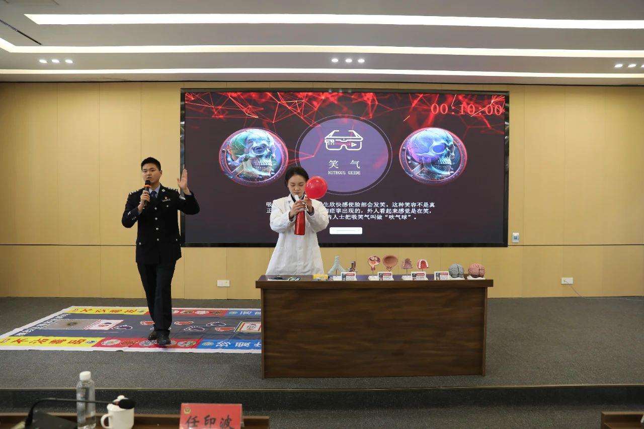 比賽現(xiàn)場,參賽選手以“識毒、辨毒、防毒”三個角度破題,聚焦禁毒戒毒宣傳教育“八進”工作,通過禁毒戒毒主題宣講和團體心理輔導兩個環(huán)節(jié)內(nèi)容依次進行展示。各參賽隊伍緊扣當下熱點話題,突出精準性和實效性,形式涵蓋情景劇、線上直播、“抽盲盒”、音樂放松療法等,內(nèi)容新穎,互動性強,充分展現(xiàn)出各支參賽隊伍的專業(yè)功底與智慧創(chuàng)新,為下步多元化開展禁毒宣傳教育工作打下堅實基礎。