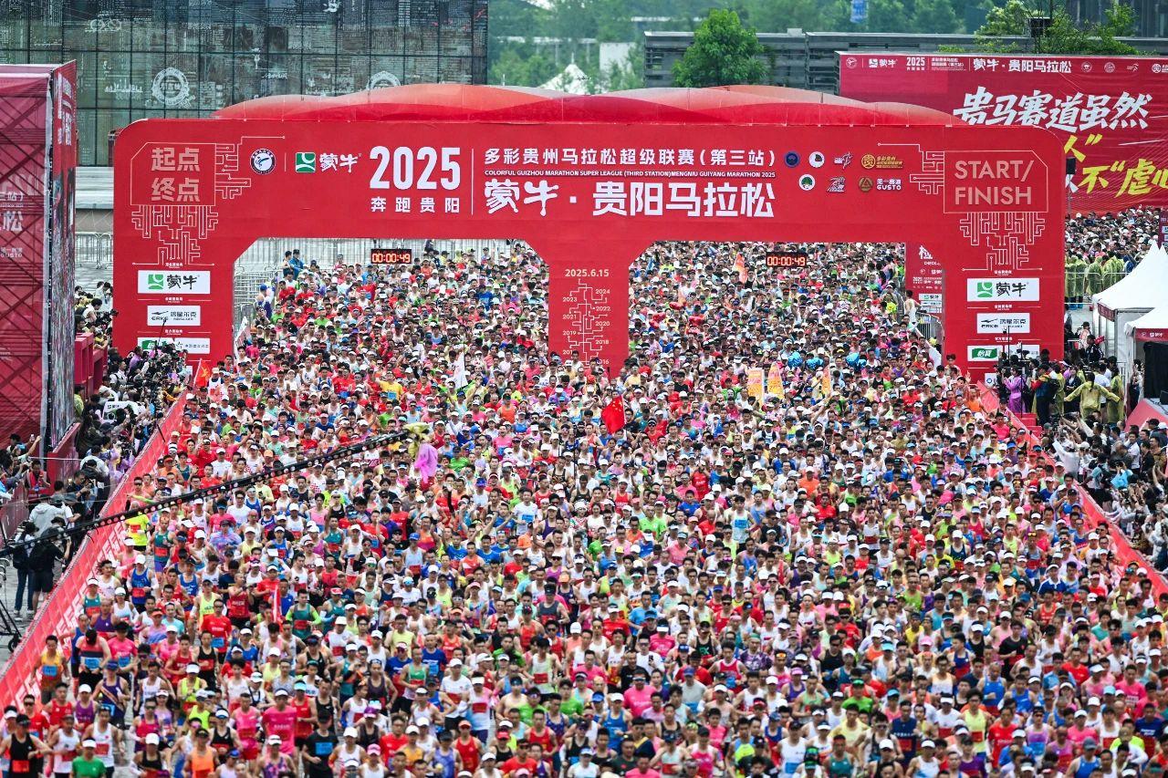 6月15日,2025多彩貴州馬拉松超級聯(lián)賽(第三站)蒙牛·貴陽馬拉松在貴州省貴陽市國際會展中心北廣場激情開跑。來自新加坡、肯尼亞、英國、澳大利亞等26個國家和地區(qū),全國34個省、自治區(qū)、直轄市以及港澳臺地區(qū)的3.5萬名跑者齊聚林城,共同感受“爽爽貴陽”的獨特魅力。