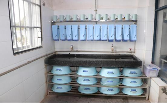 同時,監(jiān)舍內(nèi)動態(tài)更新的“定置管理牌”“衛(wèi)生分工圖”,清晰標(biāo)注人員信息與責(zé)任區(qū)域,明確“誰負(fù)責(zé)、管什么、怎么管”。小圓凳編號朝外整齊置于學(xué)習(xí)桌下,防爆飲水杯按編號定位于杯墊,學(xué)習(xí)桌各層書籍有序擺放——處處細(xì)節(jié)彰顯監(jiān)舍管理的“精準(zhǔn)化”標(biāo)準(zhǔn),營造出“規(guī)范有序、文明整潔”的改造氛圍。不僅是儲物空間與監(jiān)舍,洗漱區(qū)域、公共活動空間等也納入標(biāo)準(zhǔn)化管理范疇,實現(xiàn)公共區(qū)域標(biāo)準(zhǔn)化管理無死角。