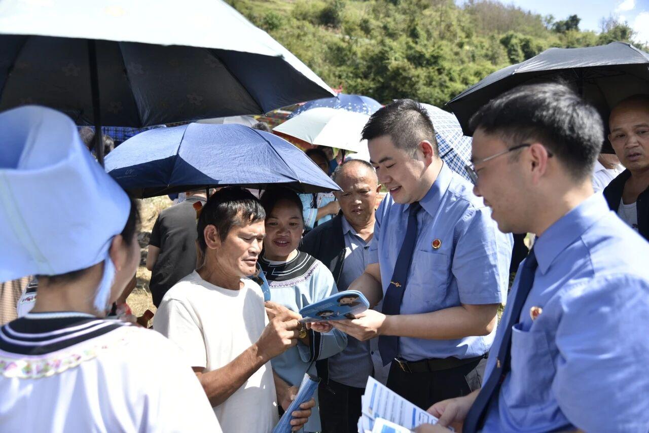 10月9日,正值水族傳統(tǒng)節(jié)日端節(jié)之際,貴州省黔南州三都縣周覃鎮(zhèn)的新各端坡上彩旗飄揚,身著水族服飾的群眾陸續(xù)聚集,準備參加傳統(tǒng)的賽馬盛會。三都縣檢察院的“雙語普法小分隊”帶著法律手冊、宣傳折扇來到現(xiàn)場,為這場民俗盛宴增添了濃郁的法治氣息。