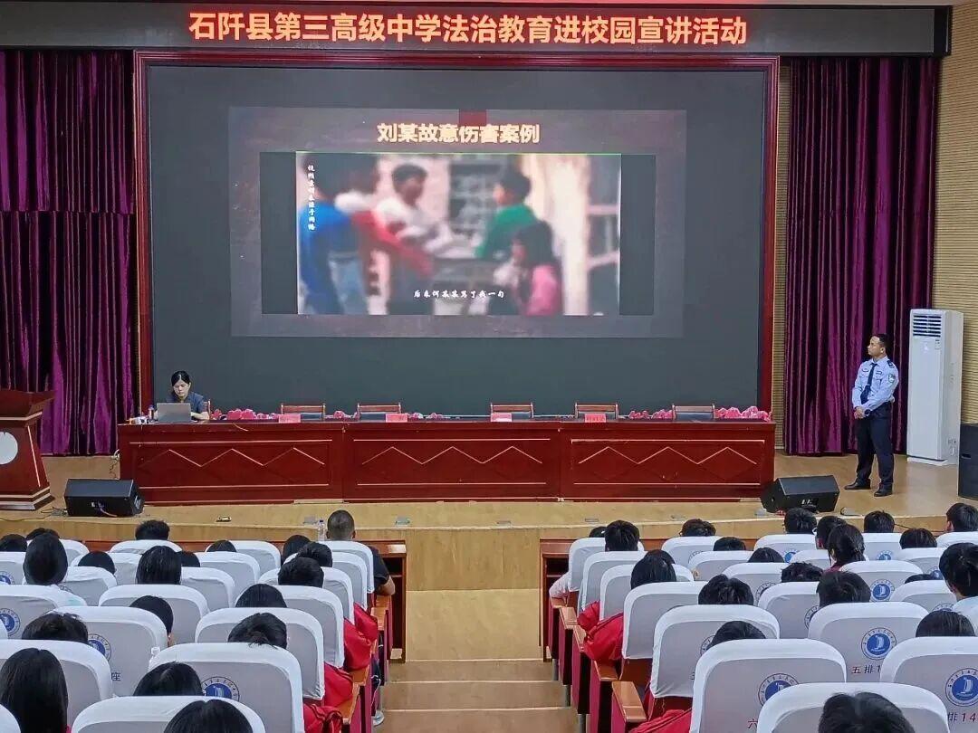 在中學課堂,貴州省未管所受邀聯(lián)合貴州省銅仁市石阡縣法院啟動“未愛護航法伴青春”系列專項活動,民警與法院工作人員組成的宣講團隊先后走進石阡縣5所中學,聚焦青少年犯罪預防與自我保護兩大核心,通過“案例剖析+法律解讀+互動問答”的形式深入淺出講解相關知識,讓師生在沉浸式課堂中樹立法治意識;白云監(jiān)獄民警李燕瓊則在貴陽市第三中學以“年齡不是護身符”為主題,通過“網(wǎng)絡犯罪”“毒品宣教”“互動問答”三個模塊,并借助“警察小熊”調動現(xiàn)場氛圍,將法治教育與學生生活緊密結合,有效提升學生法治觀念與自我保護能力。