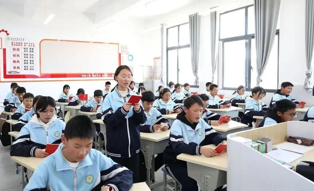 憲法朗讀環(huán)節(jié),學生們身著整齊校服,手持憲法讀本,齊聲誦讀憲法第一章總綱。“中華人民共和國的一切權(quán)力屬于人民”“中華人民共和國實行依法治國,建設社會主義法治國家”等鏗鏘有力的語句回蕩在教室,學生們在逐字逐句的誦讀中直觀感受憲法的莊嚴與權(quán)威,進一步加深對憲法核心內(nèi)容的理解,學生們邊讀邊標注重點,沉浸式投入憲法學習氛圍。