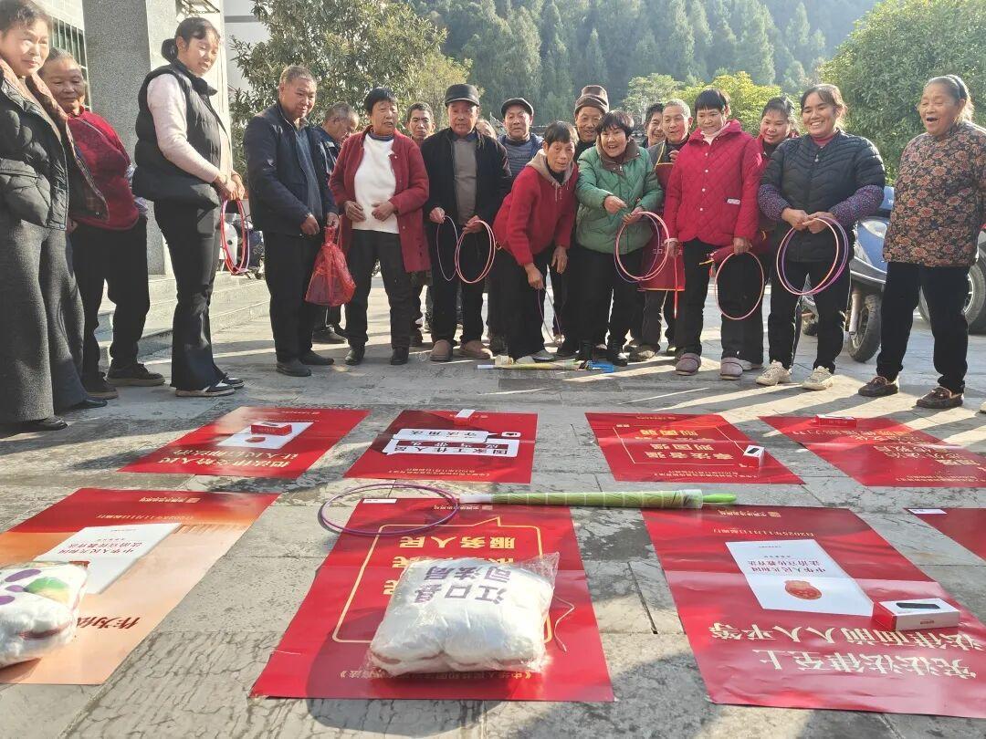 法治課堂結(jié)束后,“法治套圈圈”游戲區(qū)域迅速成為現(xiàn)場焦點。地面整齊擺放著多塊紅色展板,上面印有“弘揚憲法精神”“普法為了人民”等宣傳標(biāo)語和圖案。參與者手拿彩色套圈,全神貫注地瞄準(zhǔn)展板前的獎品。每套中一個獎品,工作人員便會引導(dǎo)居民朗讀展板上的法律知識,并通過簡單問答鞏固學(xué)習(xí)效果。這種創(chuàng)新形式打破了傳統(tǒng)普法宣傳的單向灌輸模式,通過趣味互動激發(fā)居民參與熱情。60歲的龍阿姨舉著法治禮品笑著說:“這樣既能學(xué)法律知識,又能贏獎品,太有意思了!”