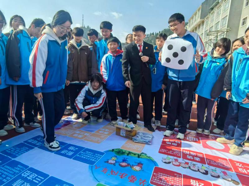 活動中,雙鳳人民法庭庭長支蘭芬以觀看預(yù)防未成年人犯罪警示教育片為切入點,結(jié)合真實涉未成年人案件,深入剖析未成年人違法犯罪的誘因。同時,干警通過“普法飛行棋”“普法大轉(zhuǎn)盤”“有獎問答”等趣味游戲,搭建普法互動平臺,讓學(xué)生在歡樂參與中深化法律知識記憶,現(xiàn)場氛圍熱烈。