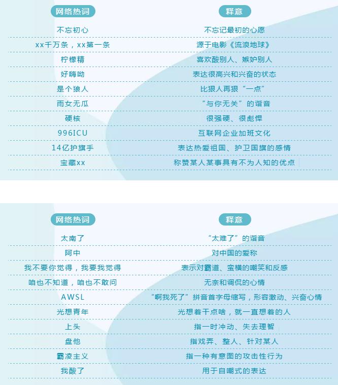法制網監(jiān)測中心(ID:fzwyqzx)綜合國家語言資源監(jiān)測與研究中心、《咬文嚼字》雜志、《語言文字周報》等權威發(fā)布,選取了2019年較有代表性的20個網絡熱詞。通過對這些網絡熱詞所反映的新特征進行分析,總結我國網民輿論心態(tài)和網絡情感變化的四點新趨勢。