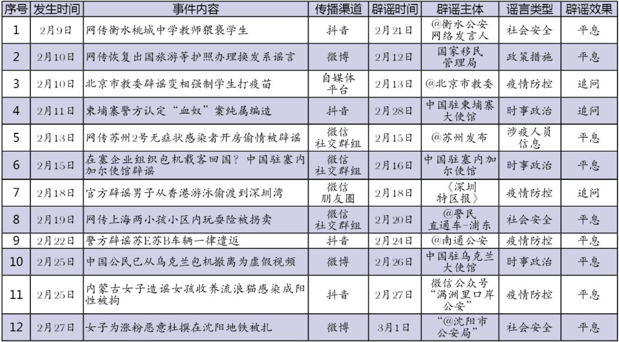 3月網(wǎng)絡涉法謠言辟謠榜單共梳理、匯總12起熱點事件,圍繞謠言持續(xù)時間、傳播渠道、產生地域、類型以及辟謠平臺等維度綜合分析,篩選兩起關注度較高、具有典型意義的案例研判,以期為網(wǎng)絡辟謠工作提供參考借鑒。