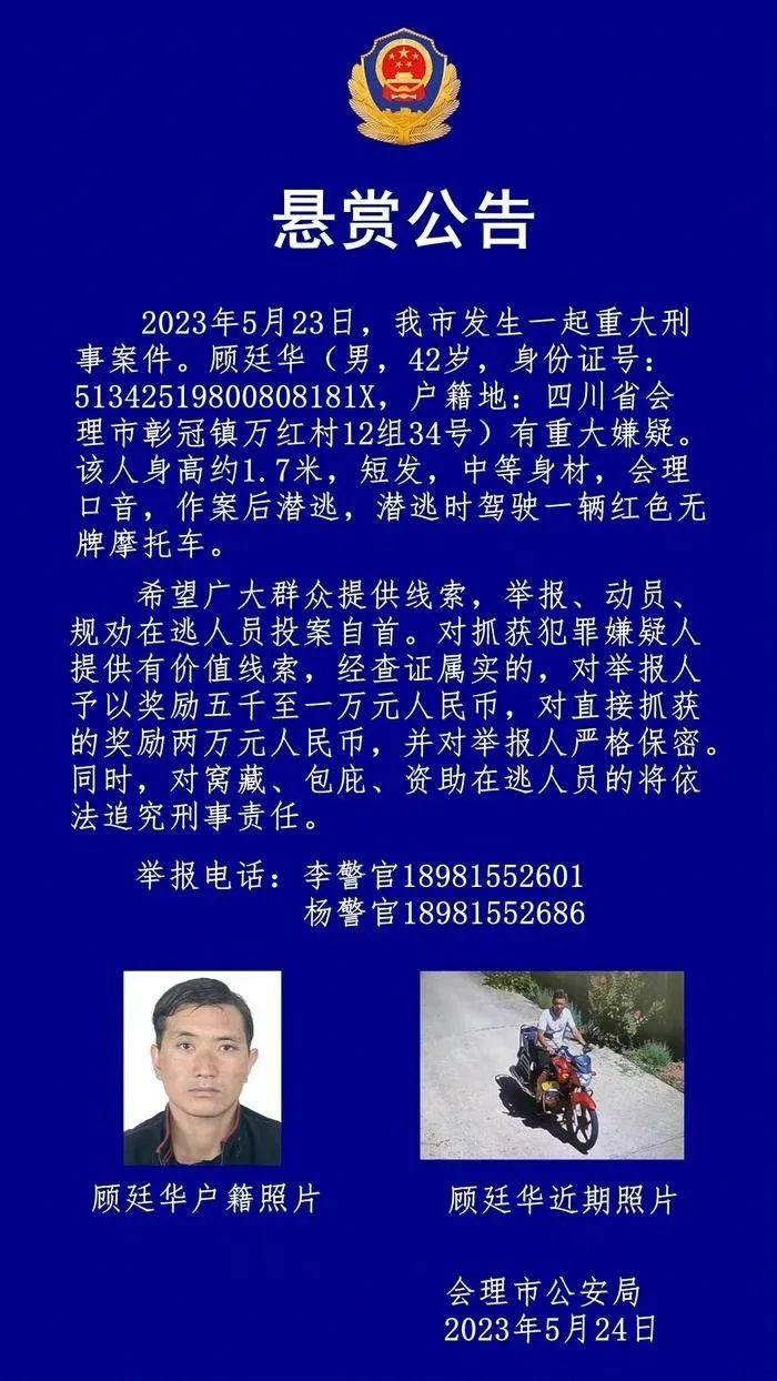 5月24日,四川涼山州會(huì)理市公安局發(fā)布懸賞公告稱(chēng),5月23日,會(huì)理市發(fā)生一起重大刑事案件,顧延華有重大嫌疑。公告詳細(xì)描述了嫌疑人的體貌特征、逃逸時(shí)使用的交通工具以及獎(jiǎng)勵(lì)金額等。然而,這則常見(jiàn)的懸賞公告卻在社交媒體上引發(fā)網(wǎng)民熱議,相關(guān)微博話題閱讀量達(dá)到2.5億人次。不少網(wǎng)民追問(wèn)案件到底有多重大,不滿警方為何不在公告中描述詳細(xì)案情。還有一些網(wǎng)民認(rèn)為嫌疑人如此危險(xiǎn),警方卻鼓勵(lì)群眾抓捕,這種方式不妥。對(duì)此,會(huì)理警方并未予以明確回應(yīng),輿情熱度隨后逐步下降。