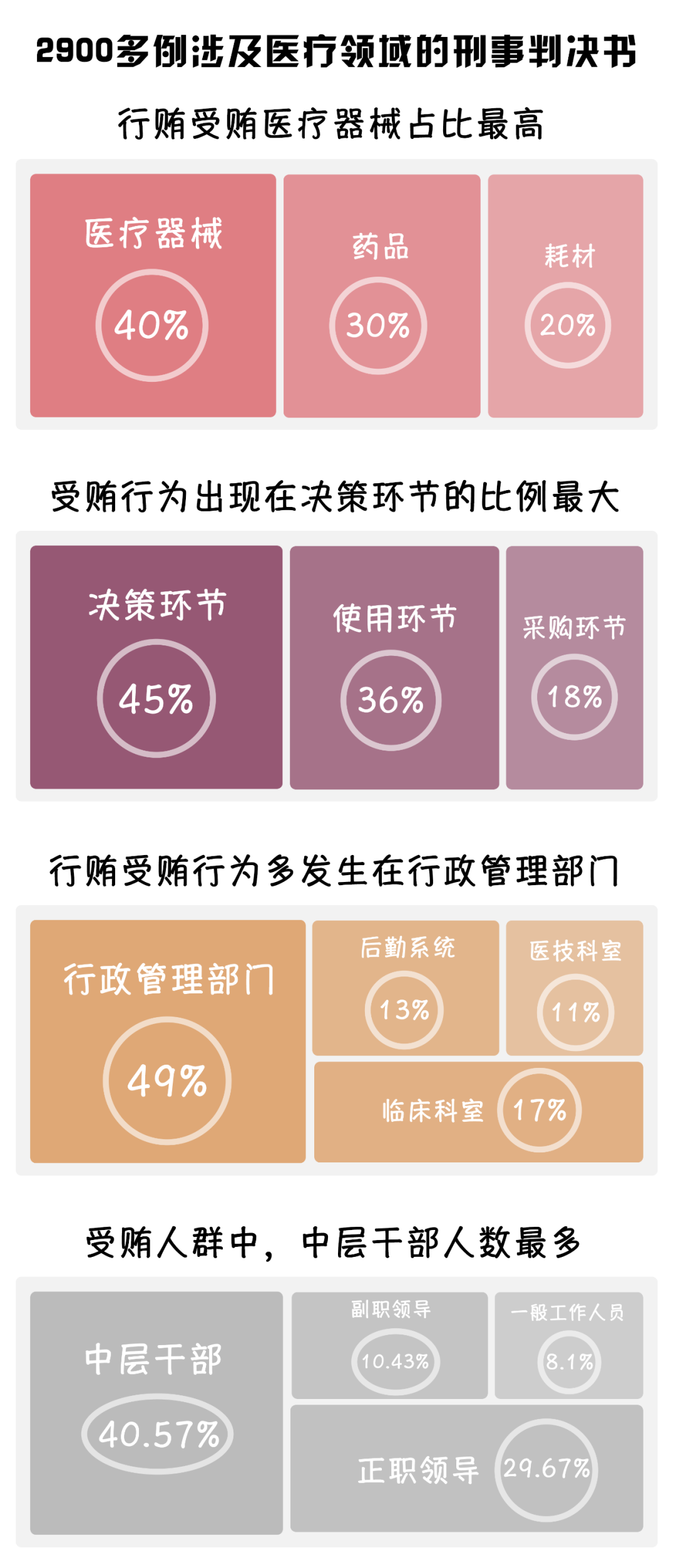 中國新聞網(wǎng)發(fā)布了一篇名為《2900多份醫(yī)療腐敗刑事判決書背后》的文章,其中梳理了2013-2021年間2900多例涉及醫(yī)療領(lǐng)域的刑事判決書,提到了如下關(guān)鍵點(diǎn):