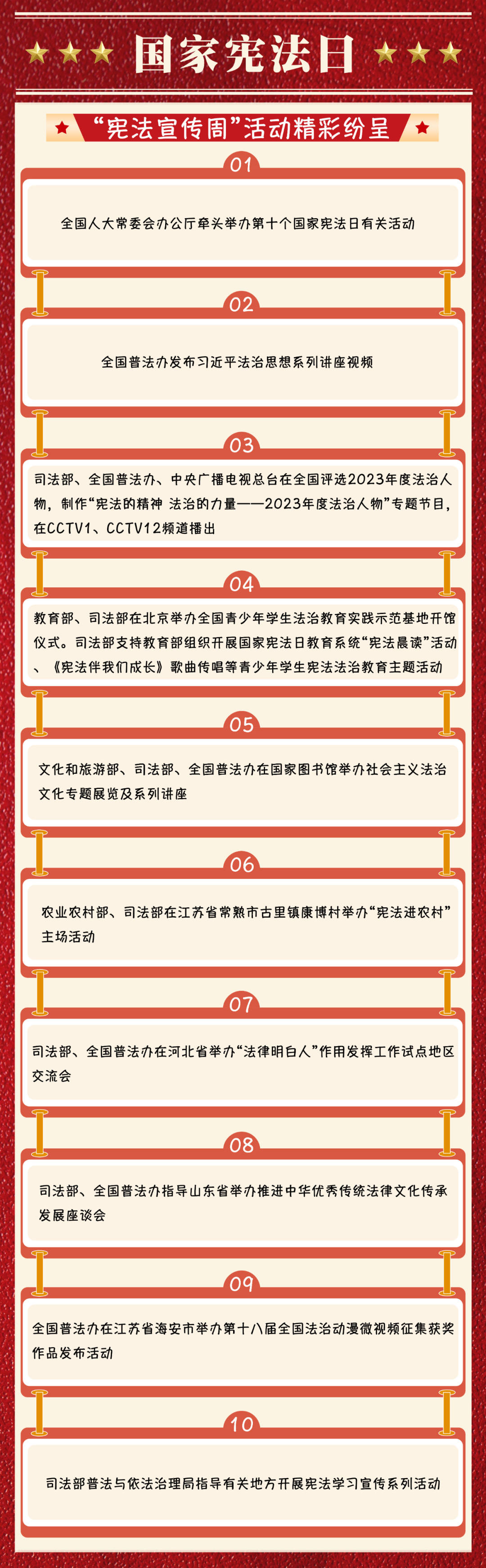 2023年12月4日,國(guó)家憲法日迎來(lái)“十歲生日”。為弘揚(yáng)憲法精神,加強(qiáng)法治建設(shè),各地區(qū)各部門(mén)積極開(kāi)展“憲法宣傳周”系列活動(dòng)引發(fā)輿論熱議。