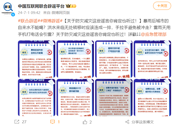 四是涉防災減災的“偽科學”信息。此類謠言幾乎年年出現(xiàn),可謂是“老掉牙”謠言,歷經(jīng)反復辟謠仍表現(xiàn)出較強的生命力,甚至還有個別網(wǎng)民以“親身經(jīng)歷”佐證謠言“屬實”。如“暴雨過后城市的自來水不能喝”“雷雨天不能打手機”等相關話題近期登上微博、百度、抖音等平臺的熱搜榜,有網(wǎng)民跟評稱:“我們這里雷電打電話的被雷劈死好幾個,那是什么原因呢?”