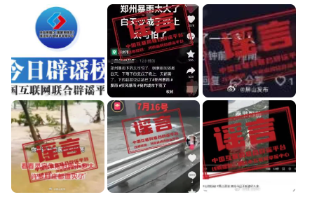 一是編造汛情災情。造謠者通過視頻嫁接、圖片拼湊等手段,捏造暴雨、內澇、滑坡、泥石流等災情信息,并將位置定位在災害發(fā)生地,具有迷惑性,容易讓人信以為真。如短視頻賬號“熟悉的背影”故意將網(wǎng)上下載的其他城市的暴雨視頻張冠李戴為鄭州,以目擊者口吻編造“鄭州暴雨下得太可怕,白天變成了晚上”等不實信息,誤導眾多網(wǎng)民留言表達擔憂;網(wǎng)傳“重慶奉節(jié)口前山體滑坡”,實為湖北秭歸一山體發(fā)生滑坡瞬間;而短視頻中熱傳的“百年難遇!濟南遭遇特大暴雨”視頻,經(jīng)濟南互聯(lián)網(wǎng)聯(lián)合辟謠平臺證實系謠言,視頻中的地鐵、街道等場景不在濟南。