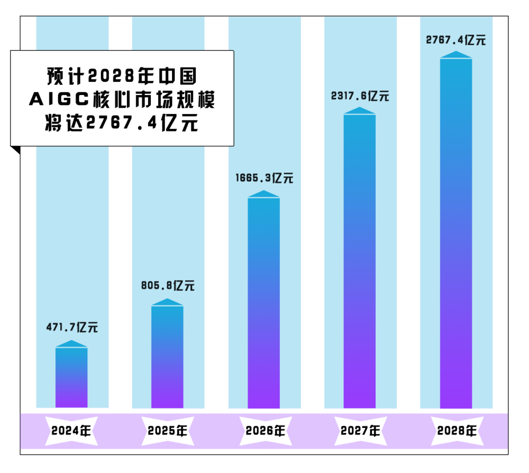艾媒咨詢發(fā)布的《2023年中國AIGC行業(yè)發(fā)展研究報(bào)告》顯示,2024年我國生成式人工智能行業(yè)核心市場規(guī)模預(yù)計(jì)為471.7億元,2028年將達(dá)2767.4億元,規(guī)模相較2024年翻了近5倍。持續(xù)擴(kuò)大的市場規(guī)模,也面臨著風(fēng)險(xiǎn)和挑戰(zhàn)。