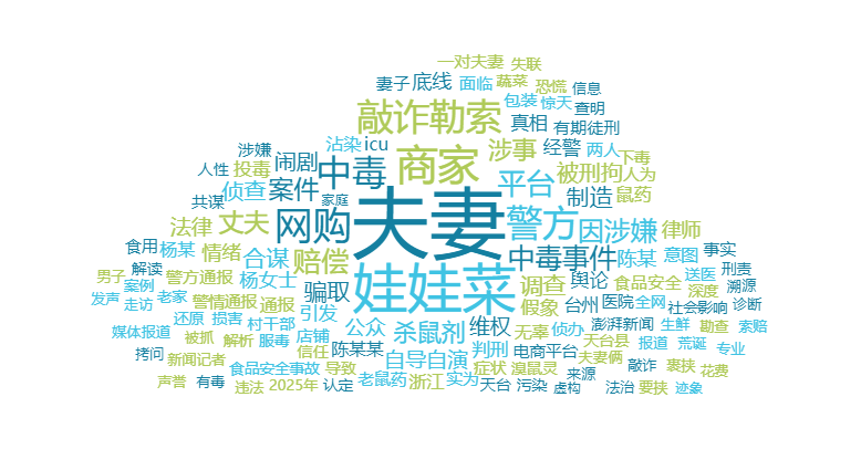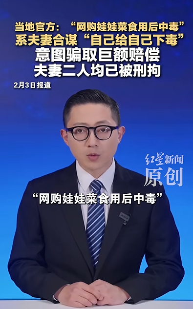 截至2月4日12時(shí),相關(guān)信息達(dá)9.7萬(wàn)余條,“#夫妻倆吃網(wǎng)購(gòu)?fù)尥薏酥卸救沓鲅?”“#警方查明夫妻網(wǎng)購(gòu)?fù)尥薏酥卸径驹?”“#夫妻網(wǎng)購(gòu)?fù)尥薏耸秤弥卸鞠嫡煞蛳露?”“#警方辟謠夫妻網(wǎng)購(gòu)?fù)尥薏酥卸鞠嫡煞蛳露?”“#吃娃娃菜中毒夫妻均被刑拘#”等相關(guān)話題閱讀量累計(jì)超過(guò)2億。其中“#吃娃娃菜中毒夫妻均被刑拘#”登上熱搜第一位。