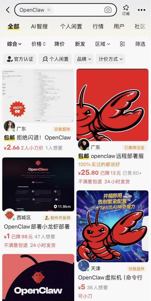 OpenClaw實(shí)現(xiàn)了AI智能體從“交互對(duì)話(huà)”到“自主執(zhí)行”的突破,能夠直接替用戶(hù)完成文件管理、郵件收發(fā)、數(shù)據(jù)分析等實(shí)際任務(wù)。由于其功能強(qiáng)大且部署需要一定技術(shù)門(mén)檻,閑魚(yú)等平臺(tái)涌現(xiàn)出大量“上門(mén)裝龍蝦”“代養(yǎng)龍蝦”的付費(fèi)服務(wù);騰訊、百度等科技企業(yè)相繼推出一鍵部署方案,甚至出現(xiàn)千人排隊(duì)等候部署的場(chǎng)面。此外,深圳、無(wú)錫等地推出“政務(wù)龍蝦”應(yīng)用,先后出臺(tái)“龍蝦十條”“龍蝦十二條”等支持政策,“養(yǎng)龍蝦”的熱度持續(xù)攀升。