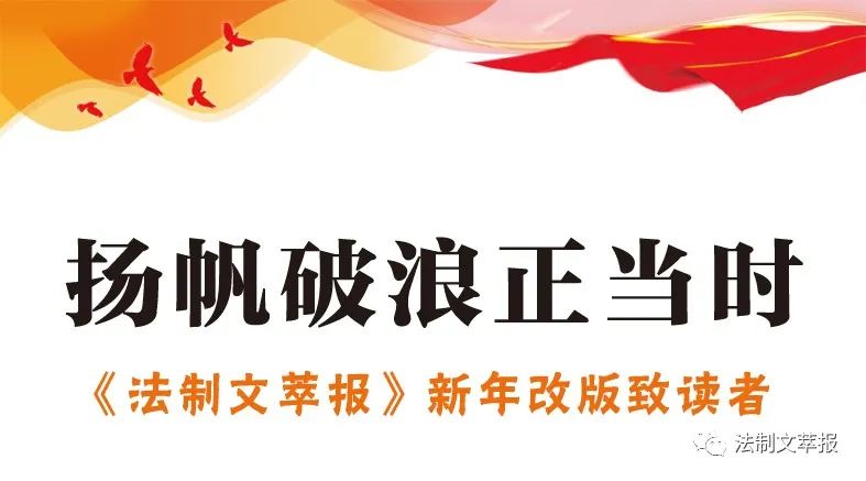 “百年機會真難遇,一線光陰更易流?!薄斗ㄖ莆妮蛨蟆返母陌婧蛣?chuàng)新,是順應(yīng)新時代的召喚,更是凝心聚力的整裝再出發(fā)。《法制文萃報》將抓住機遇、乘勢而上,擔當使命、揚帆破浪,與廣大讀者一道,書寫新篇章、創(chuàng)造新輝煌!