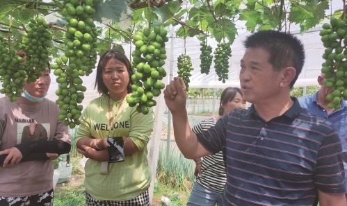 夏邑縣農(nóng)廣校聘請(qǐng)中國(guó)農(nóng)科院鄭州果樹研究所專家劉三軍博士到北嶺鎮(zhèn)現(xiàn)場(chǎng)指導(dǎo)葡萄生產(chǎn)管理技術(shù)。 王留標(biāo) 攝