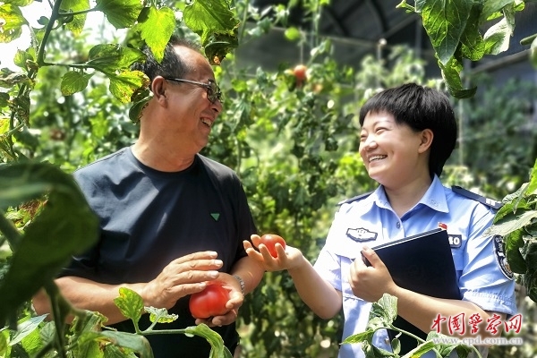 當(dāng)?shù)啬侈r(nóng)業(yè)示范園蔬菜大棚內(nèi),辣椒、火龍果等果蔬掛滿枝頭,大棚主管馮秀清精心整理著果蔬架?!拔宜耐仁I(yè)在家,是小劉跑前跑后幫我又找到了工作,特別感謝她?!瘪T秀清口里的“小劉”,是永寧縣公安局閩寧派出所社區(qū)民警劉艷。