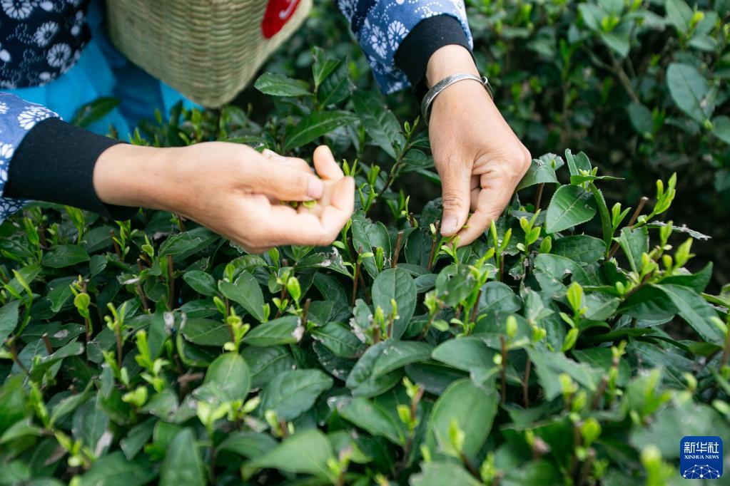 3月22日,在重慶市永川區(qū)永榮鎮(zhèn)鄉(xiāng)村振興就業(yè)園,采茶工在采摘茶葉。記者 儲(chǔ)加音 攝
