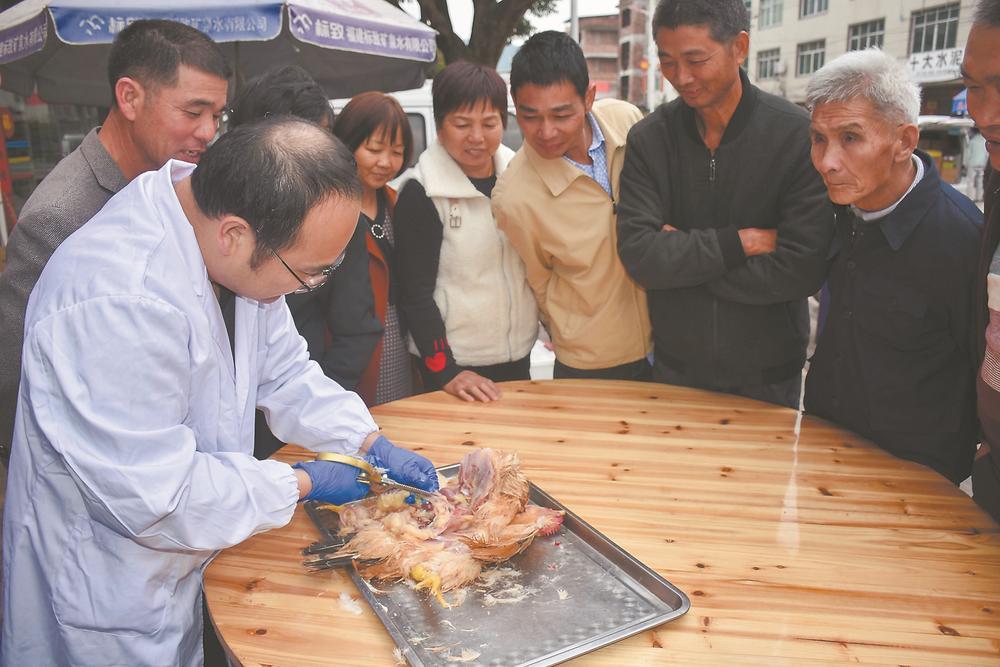 專家現(xiàn)場(chǎng)解剖家禽,講解病理常識(shí)。