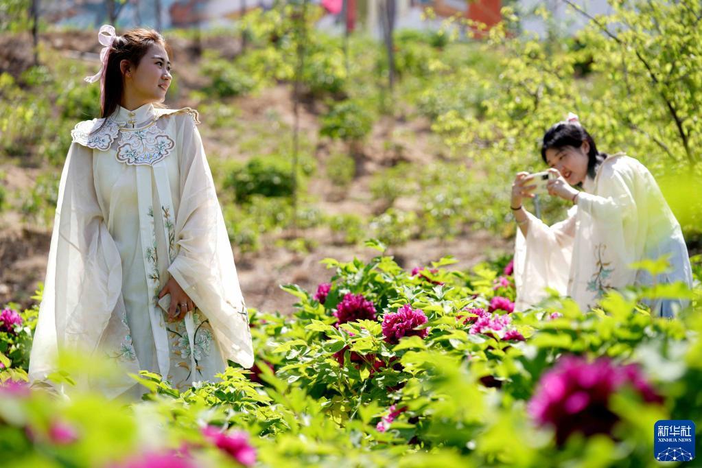4月16日,游客在白臺(tái)峪村牡丹農(nóng)業(yè)產(chǎn)業(yè)園拍照游玩。記者 駱學(xué)峰 攝