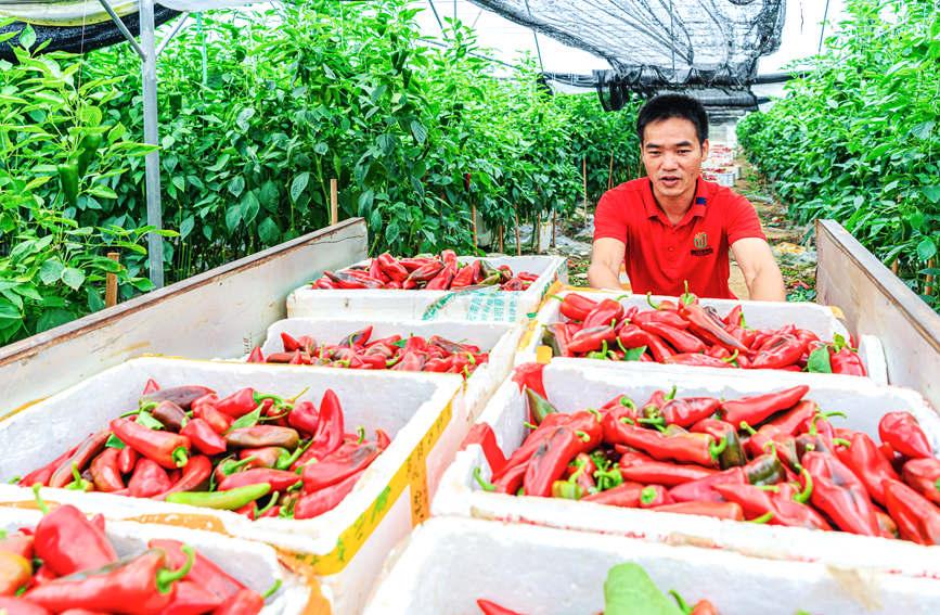 據(jù)介紹,在豐收季節(jié),彩椒產(chǎn)業(yè)基地每天聘請60多個村民采摘、分級、加工打包銷往湖南、上海、浙江等地,預計每年可采摘約160萬斤,產(chǎn)值約900萬元,為群眾增加務工收入150余萬元和增加村級集體經(jīng)濟2.8萬元。