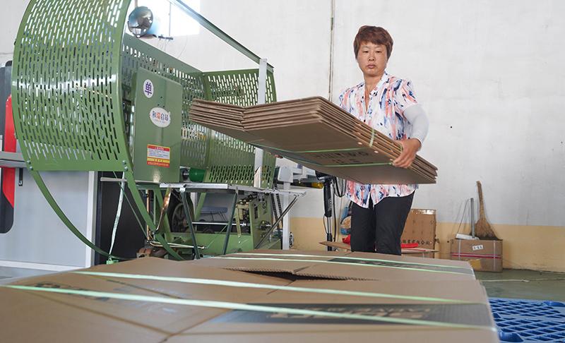 7月6日,山東省鄒平市明集鎮(zhèn)張辛村等3個村聯(lián)合建起的富濱紙箱廠,工人在生產包裝紙箱。